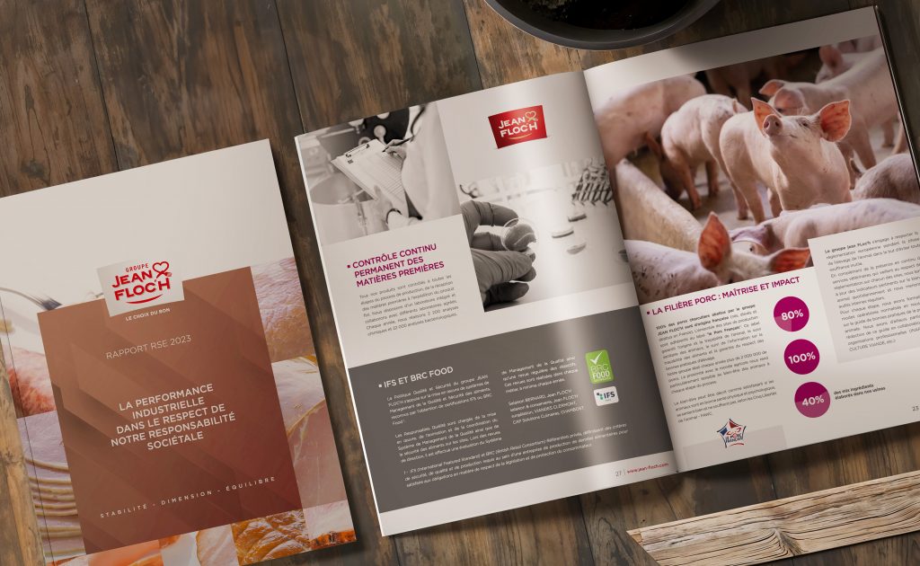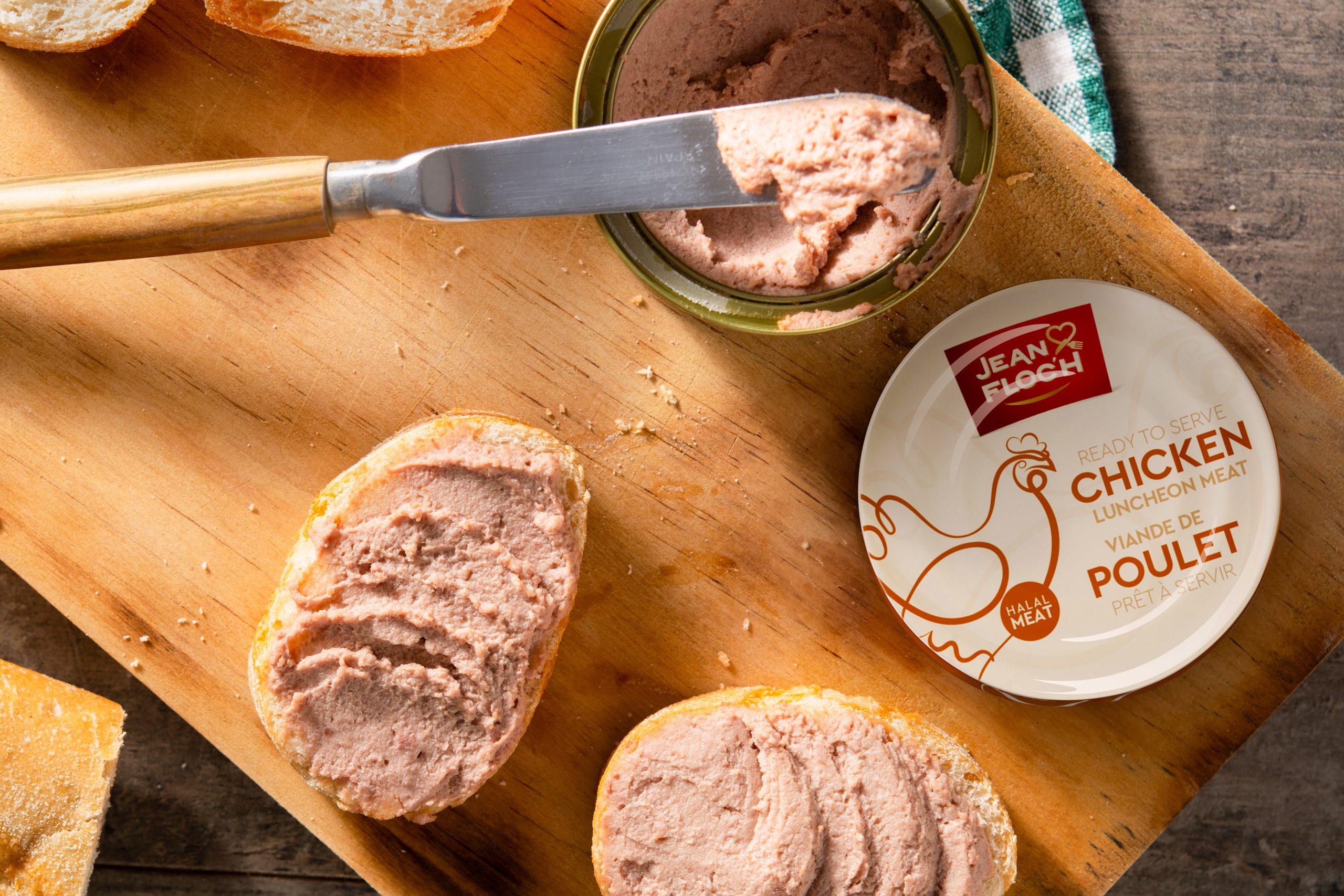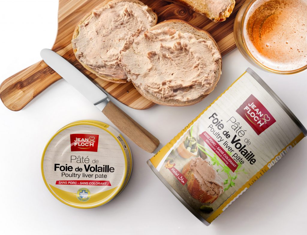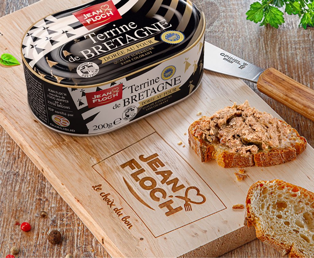 Pour le Groupe Jean Floc’h, nous avons réalisé la création d’un visuel attractif pour une boîte de conserves de viande de poulet. L’objectif était de rendre esthétique un produit habituellement perçu comme utilitaire.