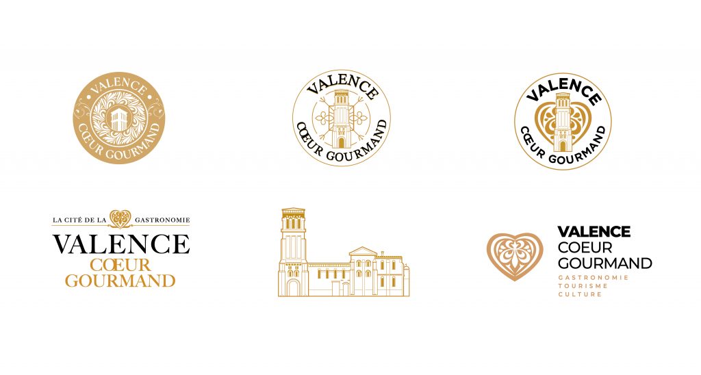 Nous avons proposé plusieurs concepts créatifs. Celui qui a immédiatement retenu l’attention évoque subtilement le patrimoine de la ville, en intégrant une stylisation de la célèbre cathédrale de Valence dans un macaron élégant. Ce symbole culturel et architectural fort, allié à une identité visuelle moderne et raffinée, a su convaincre nos clients dès le premier regard.